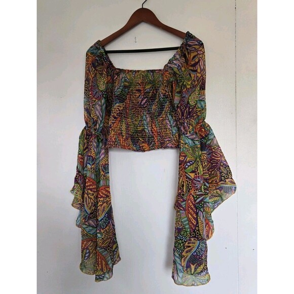 Live 4 Truth Blouse Womens M Boho Bell Sleeve Crop Smocked Colorful Indie Hippie