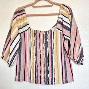 Live 4 Truth Cotton Linen Blend Striped Off-Shoulder Blouse Crop Top, L