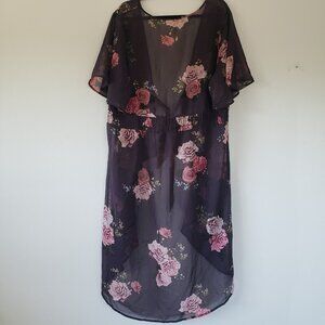 Live 4 Truth Duster Top Sheer Front Tie Floral Smocking Flowy Cover Up 2X Plus