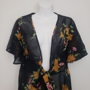 Live 4 Truth Floral Kimono Top Black Small Sheer Boho Cover Up Dark Fairy