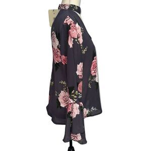 Live 4 Truth Gray Pink Floral Long Wide Sleeve V Neck Lightweight Blouse size m