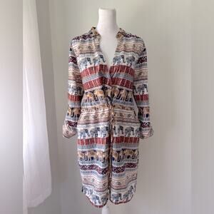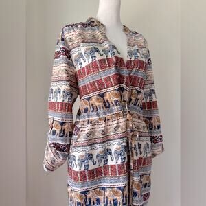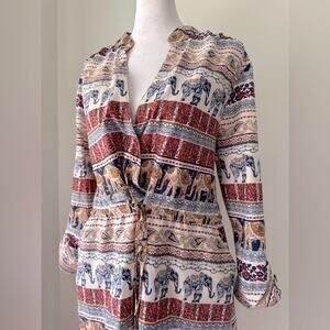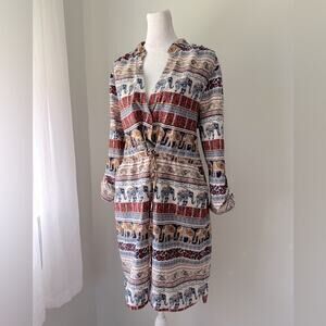 Live 4 Truth Multicolor Elephant Print Roll-Tab Sleeve V-Neck Knee Length Dress