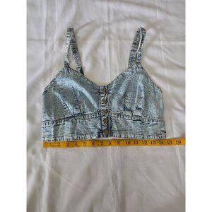 Live 4 Truth Stone Wash Shirred Back Button Front Denim Bralette Cropped Top Size Large