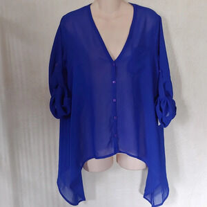 Live 4 truth Blue Chiffon Sheer Button Down Blouse Size Women's Medium NEW