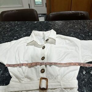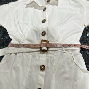 This elegant white button-down dress is perfect for any occasion. Featuring a stylish belt and classic design, it offers both comfort and sophistication.