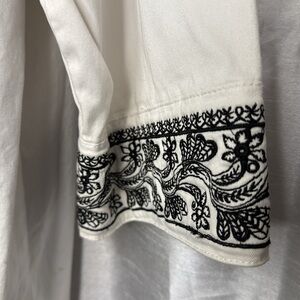 Live A Little LAL Embroidered White Black 3/4 Sleeve Snap Up Jacket Blazer