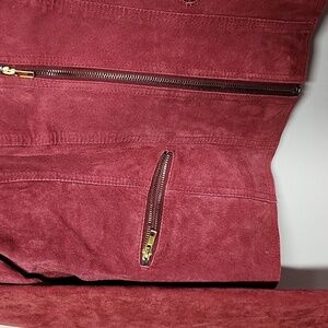 Elevate your style with this chic red suede jacket. Perfect for any occasion, it offers a sophisticated look with its sleek design and luxurious feel.