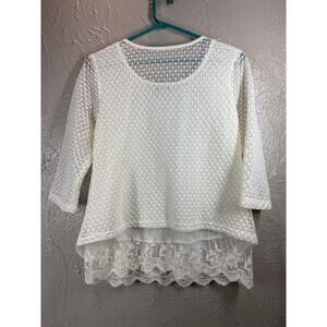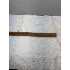 Live And Let Live Top Tunic White Gauze Crochet Shirt Hippie LS Petite Size PM
