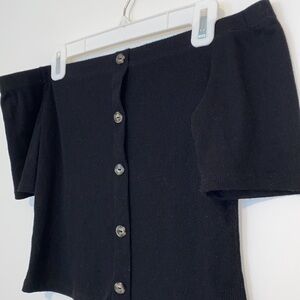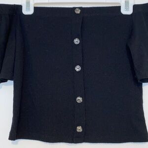 Soft and comfy off the shoulder crop top with faux buttons. Ribbed, breathable material. Gently worn.
