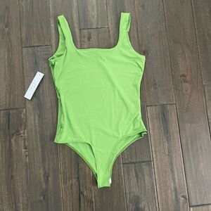 Live In The Moment Lime Green Square Neck Bodysuit Jr. L NWT