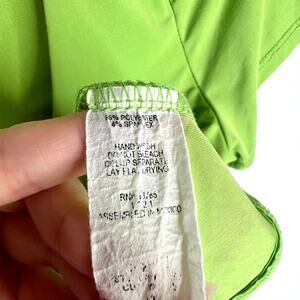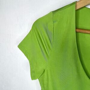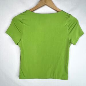 Live in the Moment bright lime green v-neck slightly cropped t-shirt. Super stretchy polyester/spandex blend. In great condition!