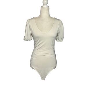 Great condition Live In The Moment white deep V unitard with poof sleeves. Double lined.