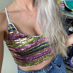 It's time to LIVE IT UP this summer in this crazy fun sequin crop top!