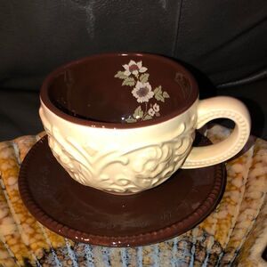 Live Laugh Love Cup & Saucer in Chocolate Brown and Ivory