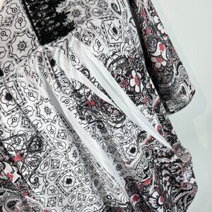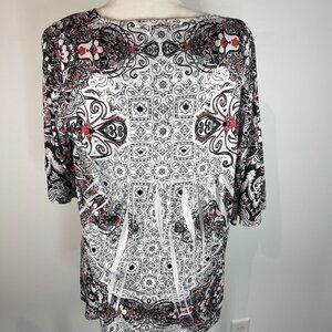Live & Let Liv Boho Black & White Flutter Sleeve Blouse size PXL