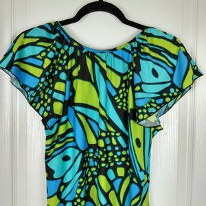 Live & Let Live Dress Womens Size S Blue Green Beaded Polyester Flutter Sleeve