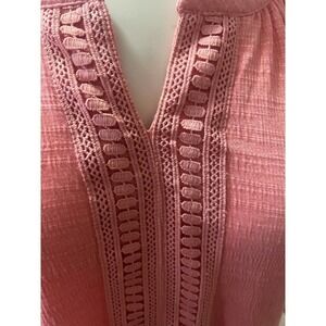 Crochet detail top with short sleeves. The pleating at the neckline makes it really cute.