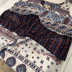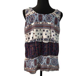 Live & Let Live Ruffled Tank Top 3 Tier Pullover Boho Paisley Print Women’s PM