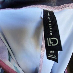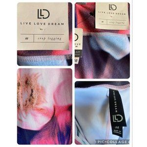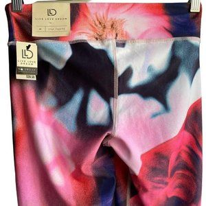 Live Love Dream Pink Womens Flowered Leggings Sz M No Sweat Water Wicking Tech