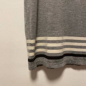 SOFT GREY HEATHER TANK WITH CONTRAST PRINTED CREAM & NAVY STRIPES AT HEM