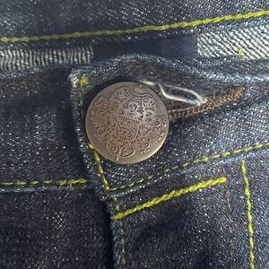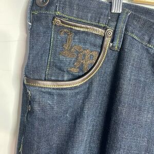 Live Mechanics Embroidered Pocket Jeans in Men’s Size 44 – featuring bold back pocket embroidery, classic five-pocket styling, and a relaxed fit with a vintage streetwear vibe. A standout piece for fans of early 2000s hip-hop fashion and Y2K denim. Please note: the first picture shows the back of the jeans. These jeans also have a couple of discolorations on the back—please see all photos for full condition details.