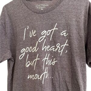This women’s purple graphic tee from Live Outside the Limits features a playful statement graphic that reads, “I’ve got a good heart, but this mouth…” Made from a soft and breathable fabric blend, this fitted tee is comfortable and lightweight—perfect for everyday wear. Clean and ready to add some personality to your wardrobe!