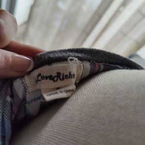 Ling sleeve top by Love Riche. Color is grey with a faux plaid top underneath and zipper detail.