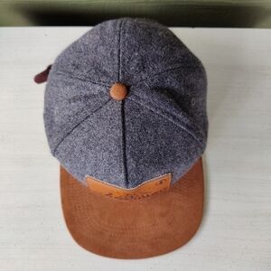 Live The Adventure Gray and Brown Wool Blend Camp Hat Cap Leather Emblem w Trees