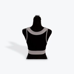 Experience ultimate comfort and support with the Live The Process sports bra, featuring a sleek black body with contrasting gray trim. Designed with a racerback and wide straps, this bra offers a secure fit for both workouts and relaxation. Its stretchy, athletic fabric ensures flexibility and ease of movement.