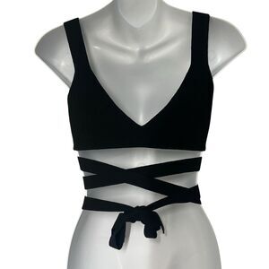 Live The Process Crop Top Women Small Theda Black Ribbed Knit Tie Detail Stretch