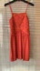 Adorable and flattering dark Orange mini dress by “Live to be Spoiled”. Beautifully intricate bodice is crafted from an embroidery/lace trim. Loose flowy skirt. High square neckline is complimented by sleeveless spaghetti strap style. Straps are adjustable with metal buckle.