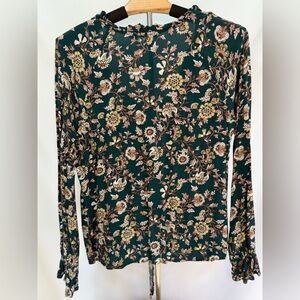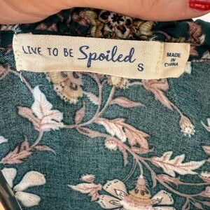 Live To Be Spoiled Green Floral Button Front Tie-Hem Blouse – Size S Boho Style