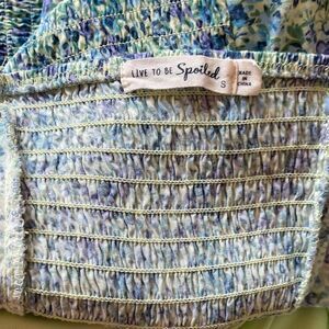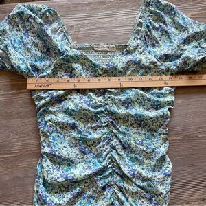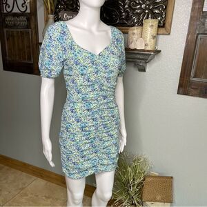 Live To Be Spoiled Green Pastel Floral Ruched Front Short Cap Sleeve Dress