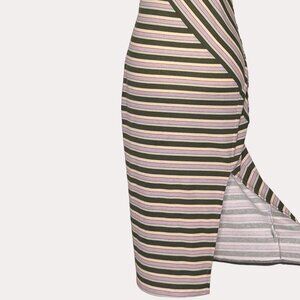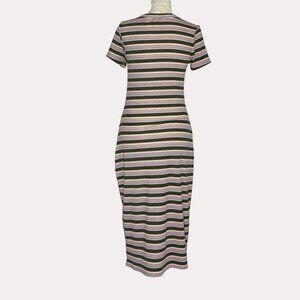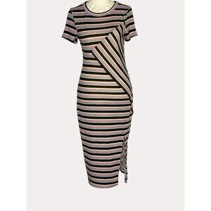 Live To Be Spoiled Rib Knit Midi Dress Side Slit Striped S