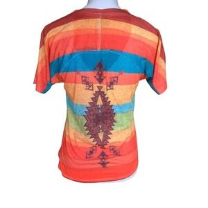 Live To Be Spoiled Women's Top Size Small V-Neck Short Sleeve Southwestern Aztec