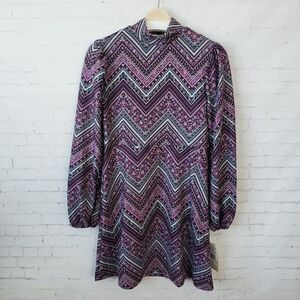 Live To Be Spoiled Purple Chevron Print Dress Size Mock Neck Long Sleeve Mini