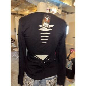 Don't miss out on this unique and stylish top at a discounted price. Perfect for anyone who wants to add a touch of edge to their wardrobe.