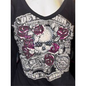 Live To Ride Liberty Wear Slashed Foil and Rhinestone Top