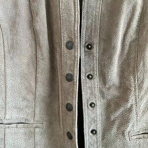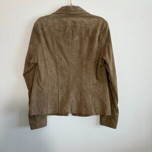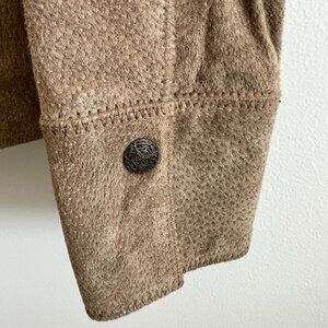 Beautiful Tan Suede Leather Jacket with Snap button front.