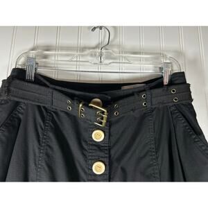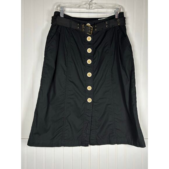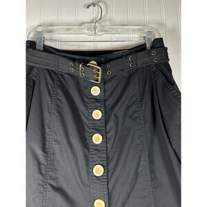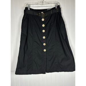 Live a Little Black cotton button down midi belt skirts emo goth grunge Sz 10