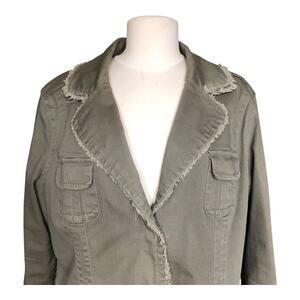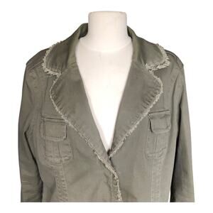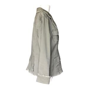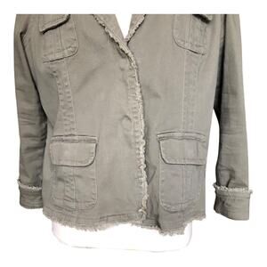 Live a Little Cotton Fringed Jacket Olive Green Snap Button Women's Size XL