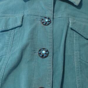 Live a Little Cotton Stretch Turquoise Corduroy Embellished Button Jacket Sz XL