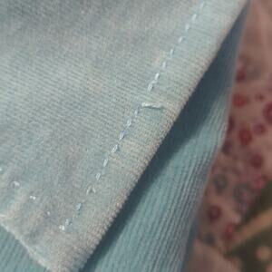 Live a Little Cotton Stretch Turquoise Corduroy Embellished Button Jacket Sz XL. Four pocket front (two are faux pockets). Embellished button down stretch jacket with peplum hemline. Armpit to armpit measures 21.5". Waist approximately 39" and bottom hem measures 44". The jacket measures 22.5" long. Worn once or twice however there are two spots on the jacket, so it does need washed. Photos 4 and 5 show the spots. The last photo shoes where there is a loose stick on the collar. Otherwise, this jacket is in excellent condition and a great addition to your wardrobe. It would look especially lovely with a white tee, a brown prairie skirt (like the one in my closet) and a pair of cowgirl boots. Western vibe, Boho, Embellished, Stretch.