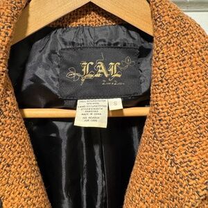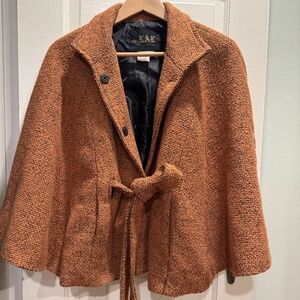 Live a Little Swing Jacket in Orange Tweed. Size small. Perfect t for fall evenings in Paris or anywhere on chilly evenings. I wore this in Paris and loved the swing and the front tie and it has two hidden pockets.