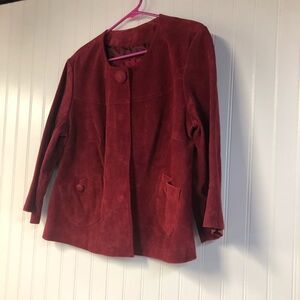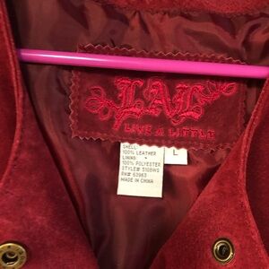 Live a Little Women's Red Suede Leather Jacket Large Button Closure