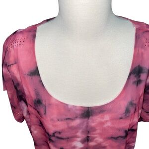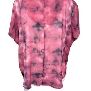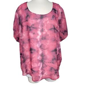 Live and Let Live Blouse Size 1X Pink w/Small Stud Detail Short Sleeve Lined