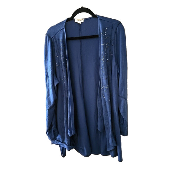 Live and Let Live Blue Open Front Rhinestone Cardigan Sweater Womans Size 3X. Pre-owned