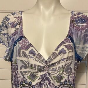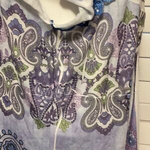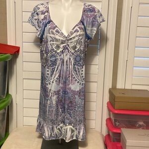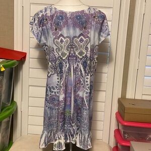Charming nightgown with paisley pattern. Features flutter sleeves and ruffled hem. Soft fabric for comfort.