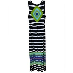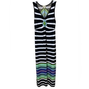 Live and Let Live Striped Multiprint Sleeveless Maxi Dress Medium