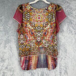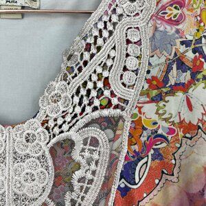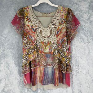 Live and Let Live Top PL Tiered Crochet Trim Sublimation Sheer Sleeves